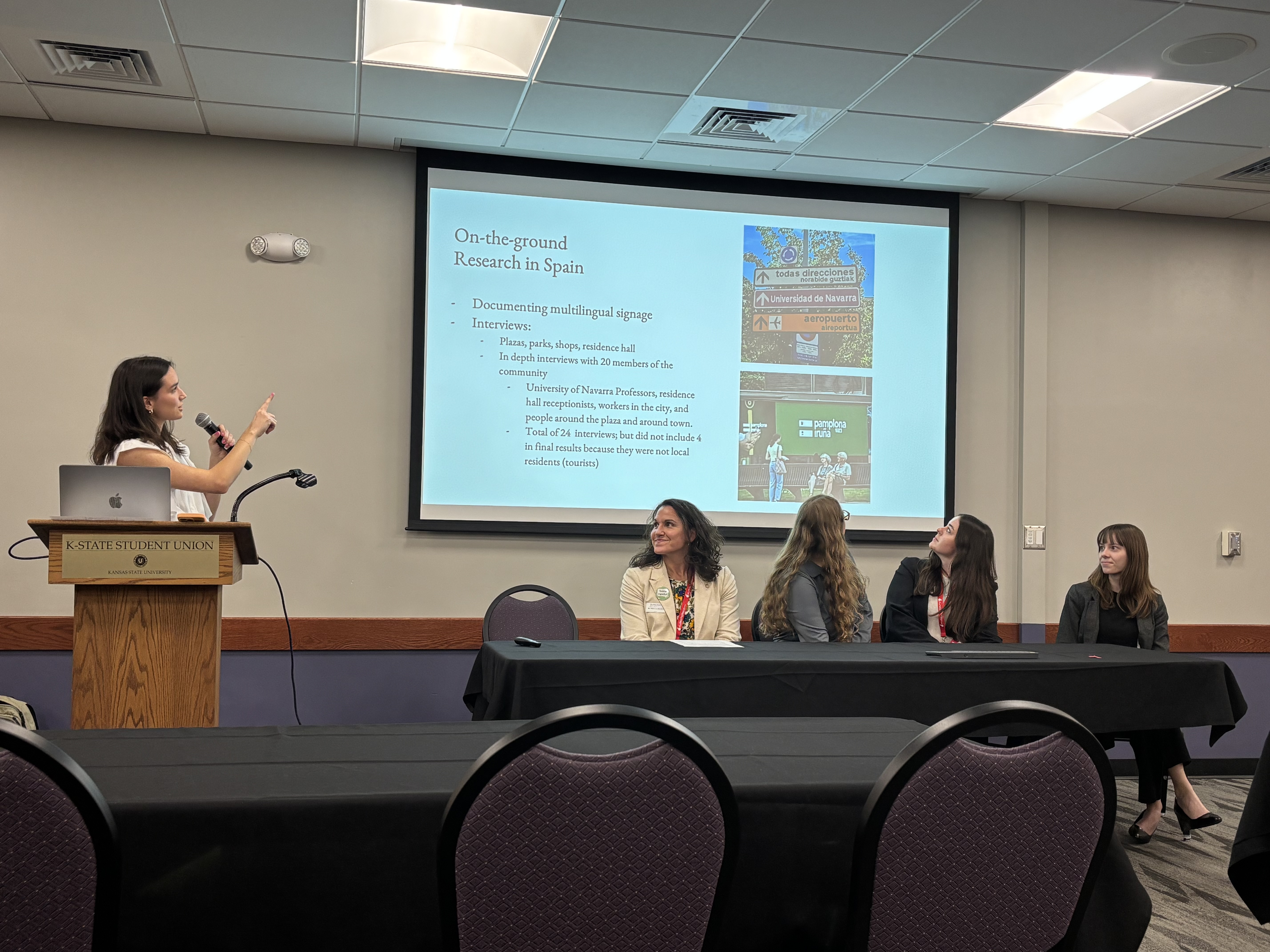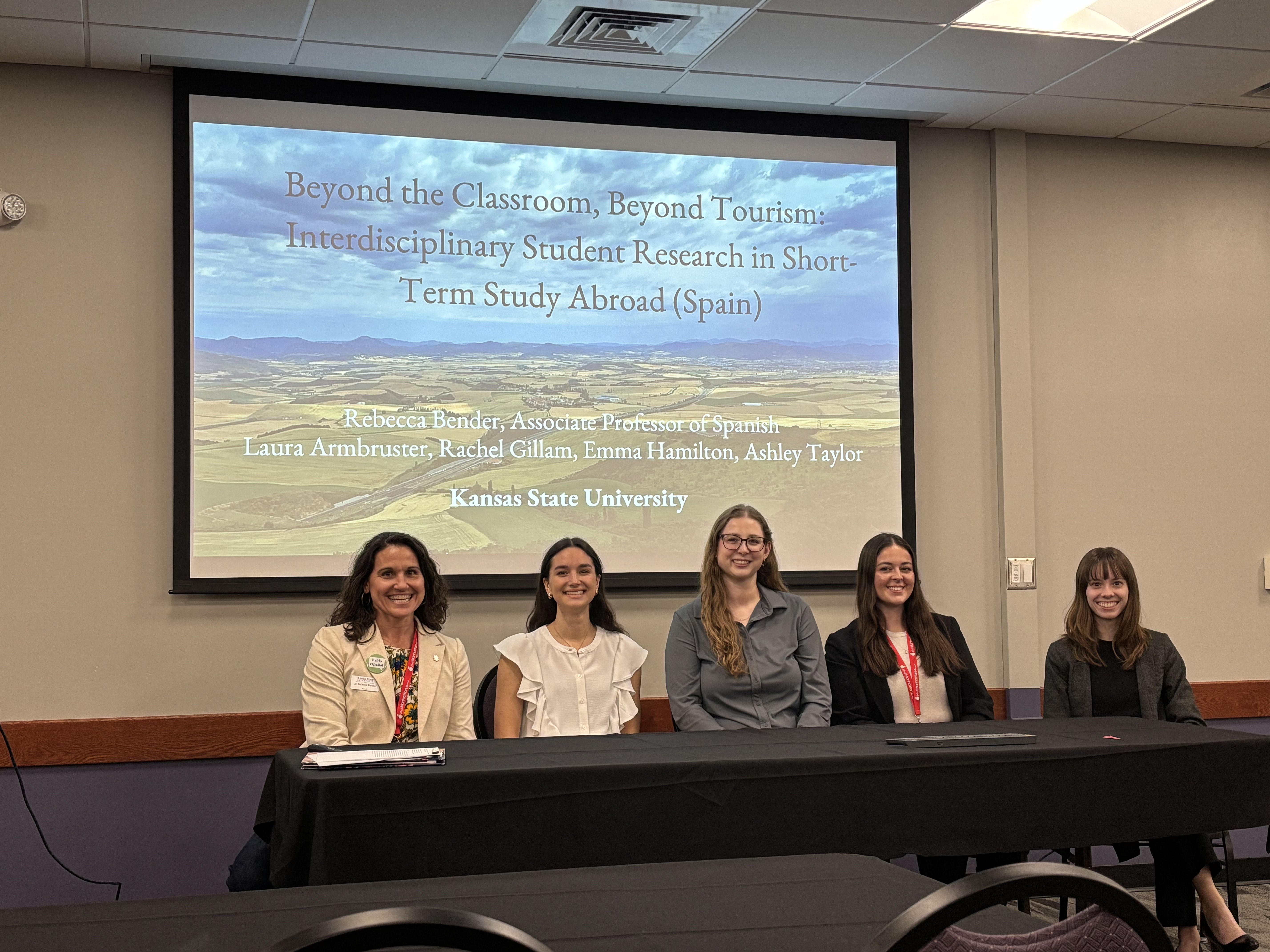 I thought I’d share what several students co-presented with me at the recent Kansas World Languages Association’s (KSWLA) annual conference in November, 2025. Each of these students had done exceptional work in Spain over the summer and I wanted them to be able to share their projects beyond our classroom – especially since we did not have a traditional classroom, of course! – and to showcase how the Spanish language skills and Spanish study can enhance almost any other major. Our panel was titled “Beyond the Classroom, Beyond Tourism: Interdisciplinary Student Research in Short-Term Study Abroad (Spain),” and the goals were: (1) for students to share their research structures, on-the-ground activities, results, and reflections on linguistic, cultural, and professional growth, (2) to demonstrate how world language study can meaningfully intersect with STEM and other fields, and (3) to highlight language learning and continued language study as a pathway to global citizenship and intercultural competence, while also promoting creative models of student-centered research abroad.