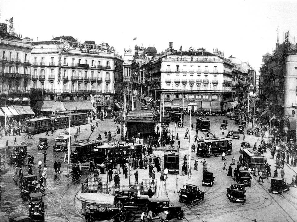 And in the Puerta del sol of the 1930s, what exactly does a Model-T driving on an un-paved or semi-paved road sound like? What noises are present when the flow of street traffic lacks the direction of stoplights and the organization of painted lanes or traffic circles? There are certainly fewer automobiles, yet there are many more trolley cars and cables… pedestrians seem to amble about among the traffic rather than keeping to the sidewalks or “crosswalks”…