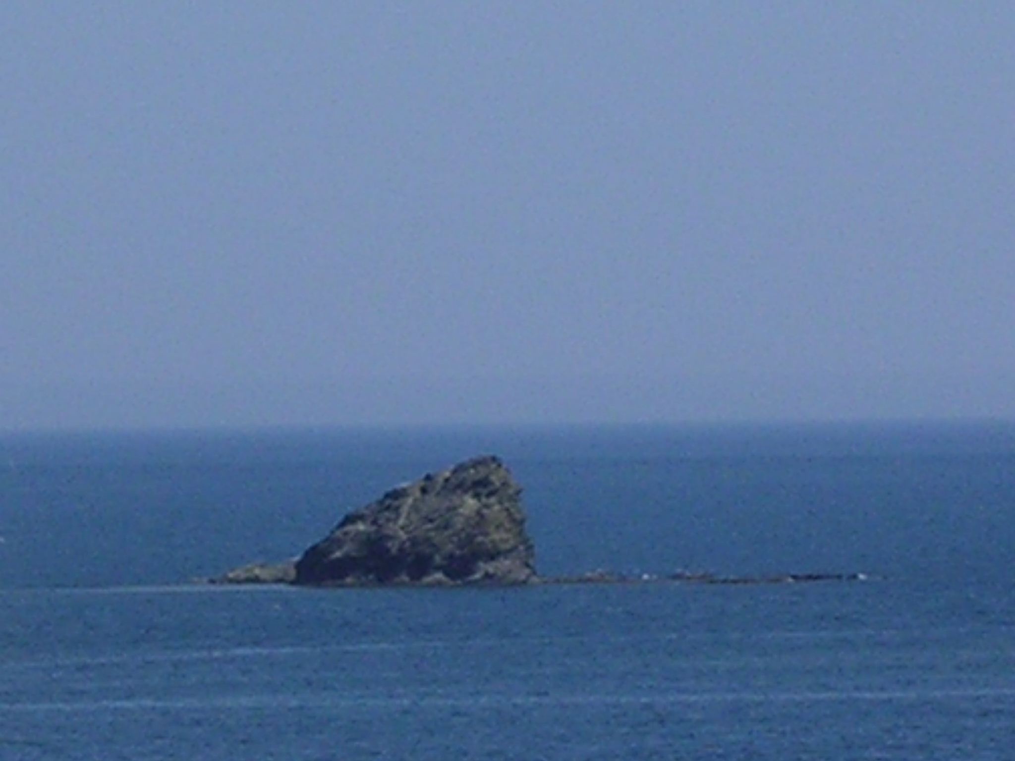 After reading this text, I began to pay especially close attention to the landscapes of my favorite paintings by Dalí. Below are a few of my photographs from Cadaqués and Portlligat, taken in 2004, alongside some of Dalí’s paintings that contain the same locations, buildings, landscapes, or other geographical features. I have divided the paintings below into two sets. The first are those that contain a depiction of the rock formation “Cucurucuc,” which is visible from any point of the beach in Cadaqués. The second grouping contains paintings with backgrounds that exhibit the contrasting coastal landscape – the calm, smooth waters of the bay against the rugged, rocky coastline at Portlligat.