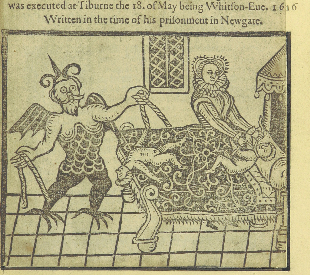Coincidentally, after reading this chapter on infanticide, I found the below illustration of a murderous mother, accompanied by what appears to be an early modern rendition of the devil, by way of The British Library‘s collection of images, over 1 million of which are now available free in the Public Domain. Well, coincidentally might apply best to the fact that I found out about the free images after re-reading that chapter… then deliberately searched (a bit nervously) for “infanticide”!