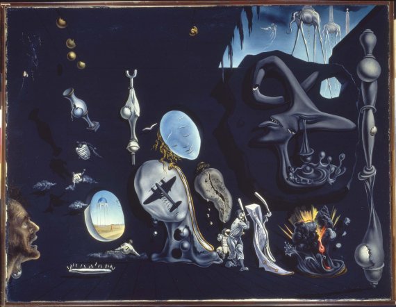 This darker, more pessimistic, and often existential vein of surrealism became especially prominent in the 1930s. This was an era marked by general social and political unrest on a global scale – the first World War had left world powers divided, social revolutions were springing up across Latin America, the stock market crash in 1929 sparked the decade-long Great Depression in the US, and Spain was suffering from great political instability an the downfall of its monarchy and dictatorship… indeed the Spanish Civil War (1936-39) was looming on the horizon. Artists responded, remedying their angst and disgust by rejecting traditional aesthetic and moral values that had brought the world to its current place. Surrealism offered a perfect expressive outlet – Breton had defined it as “pure psychic automatism,” a process by which thoughts are expressed without the intervention of reason, logic, or moral or aesthetic preoccupations. Under this paradigm, chance, locura (craziness), dreams, and subconscious desires – no matter how absurd or offensive – were celebrated. Salvador Dalí’s painting, Melancolía (Melancholoy), although created later in 1945 after the dropping of the atomic bomb on Japan, is an example of the way in which Surrealism allowed for a new way of interpreting reality that would take into account the most violent, irrational aspects of man’s psyche.